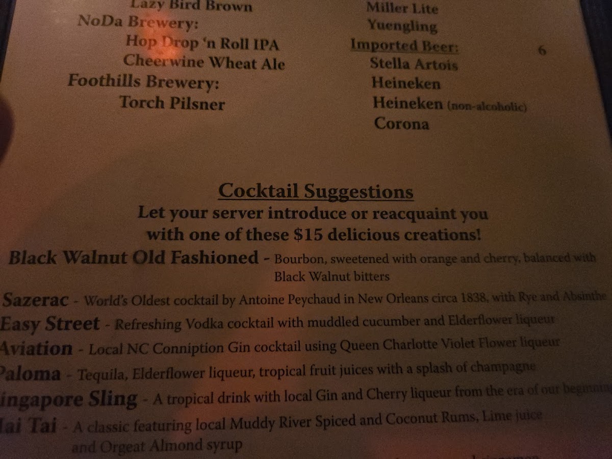 Beef 'N Bottle Steakhouse Menu